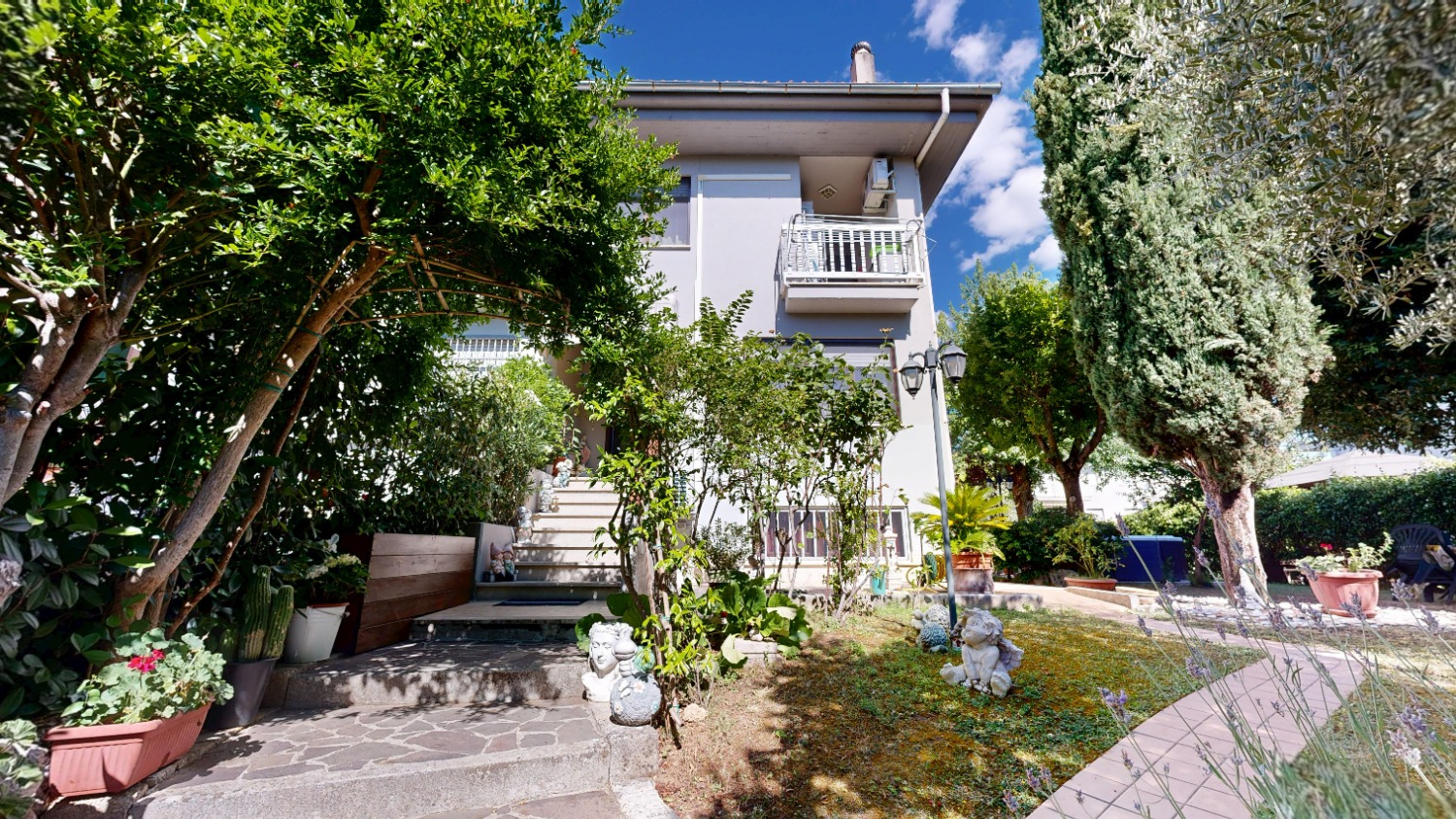 ZONA DE JULIIS - CENTRO CITTA': Villino di testa in tri-familiare con giardino ampio e curato. La casa per la parte abitativa si sviluppa su 2 livelli, al piano rialzato oltre alla zona giorno e al bagno è presente una comoda stanza da adibire a studio o camera da letto mentre al piano I° sono presenti 3 camere e 2 bagni. Ampie e molto curate anche le superfici accessorie, al piano seminterrato si trova un'ampia sala hobby con bagno e seconda cucina, a tale livello si può accedere anche dall'area cortilizia condominiale. L'immobile costruito alla fine degli anni '80 e migliorato nel tempo, si presenta in ottime condizioni. Il punto di forza della casa, che ne fa un oggetto raro, è di certo il giardino che protegge e accoglie con i numerosi alberi da frutta, il gazebo e una vasca idromassaggio ....... per momenti di relax esclusivi.